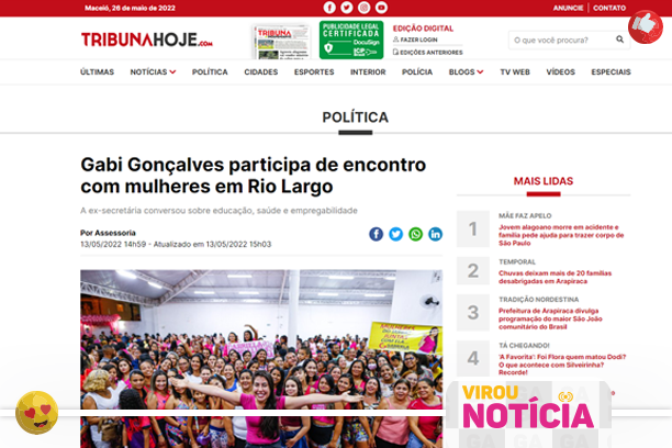 Em sua atuação como Secretária de Relações Institucionais da Prefeitura de Rio Largo, Gabi pôde idealizar projetos que aproximaram a sociedade do poder público e beneficiam a população até hoje.